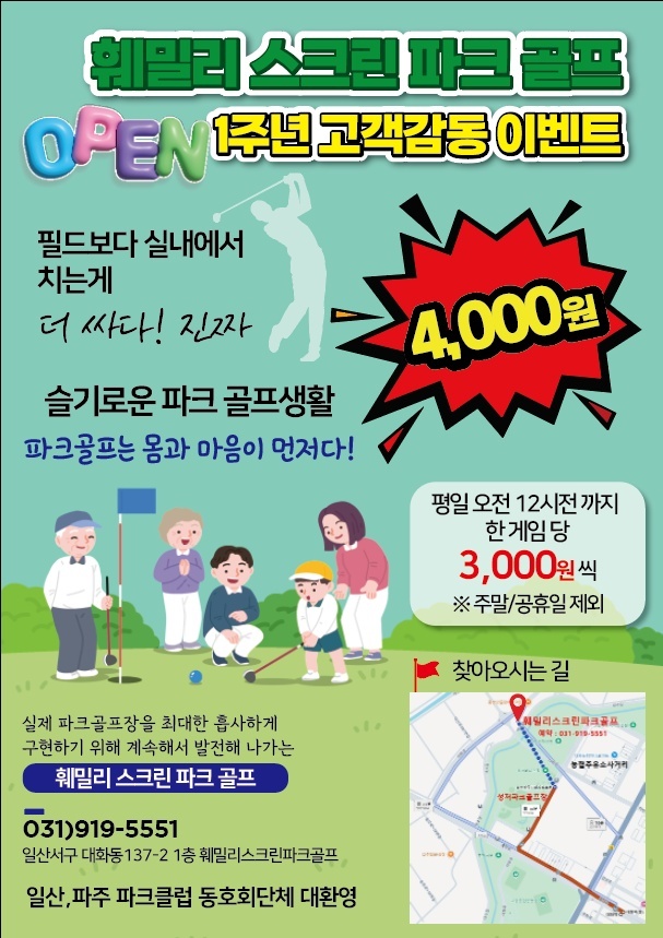 훼밀리 스크린 파크골프는 오픈한지 1주년이 되어서 지금 이벤트 행사중이라고 합니다.